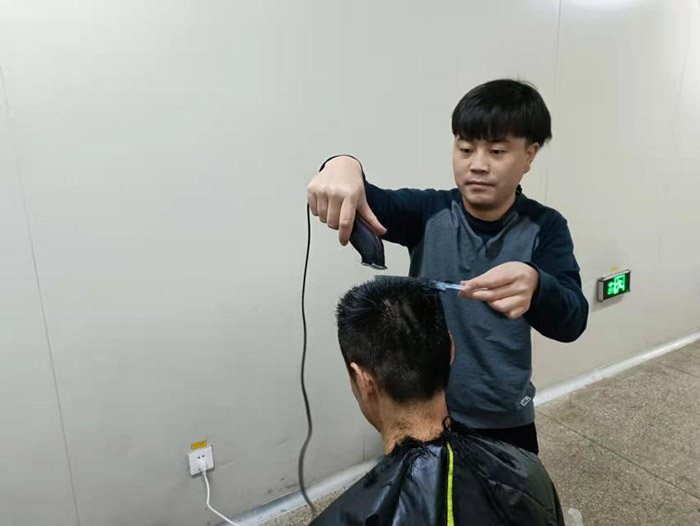 這一幕發生在11月21日公司中提車間。疫情阻擊戰開始至今已將近一月,為做好抗疫情保生產工作,公司采取了封閉式管理。500多名干部員工駐廠,堅守崗位,加班加點,維護了廠內良好的生產生活秩序。然而,封控近一個月,越來越多的人有了理發需求。尤其是男職工,一個個發壓眉、鬢過耳,凌亂而萎靡的樣子,讓人看在眼里急在心里。