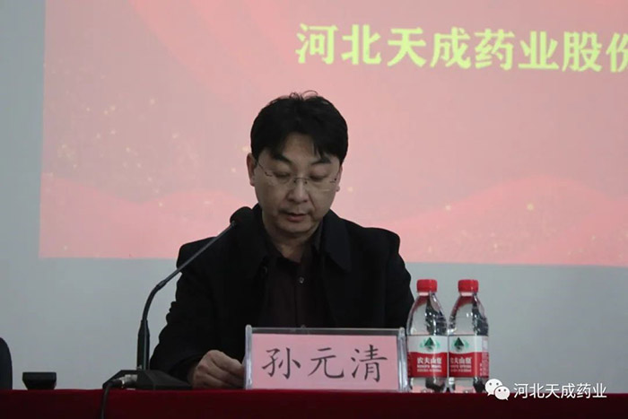 天成藥業總經理兼渤海分公司總經理孫元清宣讀《2022年度先進個人賀先進集體評選結果》