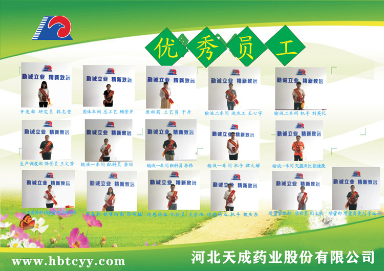 | 8 | 律大蟒 | 輸液一車間 | 制袋灌封 | 他虛心學習,不斷完善自身技能,提高業(yè)務能力,很好的完成本職工作。他不忘幫助身邊同事,在崗位上營造了良好的氛圍。 | |